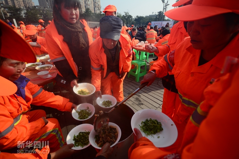 1300名環(huán)衛(wèi)工人 吃羊肉湯壩壩宴溫暖過冬