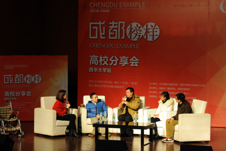 23日下午2點(diǎn)半,成都榜樣高校分享會西華大學(xué)站如約與同學(xué)們見面,成都榜樣曾帥、陳春元、江艷、嚴(yán)柳在現(xiàn)場與同學(xué)們面對面交流,他們用各自經(jīng)歷向同學(xué)們發(fā)出倡議:在夢想的路上一定要堅(jiān)持。