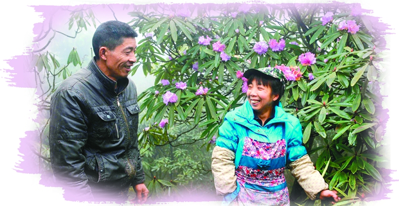 從山下的龍池鎮(zhèn)政府出發(fā),經(jīng)過一個多小時的車程,在臨近龍池景區(qū)時,公路左邊有一條不起眼的小道,沿著小道顛簸上山,才到達(dá)李建書和周小芳在杜鵑花園內(nèi)的家。