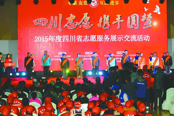 志愿精神已成為這個時代重要的正能量。為了分享志愿服務(wù)經(jīng)驗,推動四川的志愿者力量,弘揚志愿精神,讓志愿服務(wù)更深入地與時代互動,12月4日,“四川志愿·攜手圓夢”四川省2015年度志愿服務(wù)展示交流活動,在成都市高新區(qū)芳草街道綜合文化活動中心舉行。
