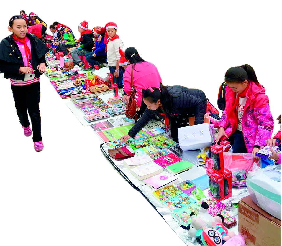 12月9日放學(xué)后,全班孩子又在學(xué)校旁擺起近20個(gè)攤位現(xiàn)場義賣。“我們的潛在顧客就是學(xué)生和接送他們的家長。”小女孩韓念琪選擇閑置物品時(shí),經(jīng)過了深思熟慮,“一定要適合他們用。”她不僅有自己的“生意經(jīng)”,還是推銷小能手?!靶『⒆佑媚毭P字容易把墨弄得到處都是,用這個(gè)就不會啦!”經(jīng)過一番“推銷”,練習(xí)書法的水寫板被她成功售出。