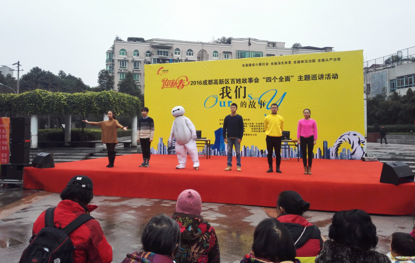 據(jù)悉,此次活動(dòng)為成都高新區(qū)系列“迎新春”活動(dòng)之一,通過新穎的百姓故事會(huì)形式為基層群眾送上了新春祝福。百姓故事會(huì)主題巡講通過深入挖掘成都高新區(qū)在推進(jìn)“四個(gè)全面”中的感人題材和典型故事,將這些真人實(shí)事用歌舞、小品、曲藝、情景詩朗誦等藝術(shù)形式講述出來。