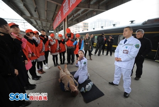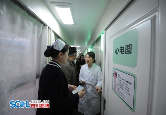 今年春運(yùn),成都鐵路局預(yù)計(jì)發(fā)送旅客約2560萬人,同比增運(yùn)約236萬人,其中發(fā)送長途旅客約1000萬人,同比增加106萬人。“每年春運(yùn),長途旅客旅途辛勞,一旦生病便面臨缺醫(yī)少藥的難題?!背啥艰F路局社保處副處長楊責(zé)介紹,這列醫(yī)療列車是去年9月改造出來的,初衷是為鐵路沿線特別是偏遠(yuǎn)地區(qū)的一線職工“送醫(yī)上門”,但從今天起將向旅客開放,并投入2016年春運(yùn)使用。期間,醫(yī)療列車將進(jìn)駐西昌、宜賓、渠縣等人流量大的車站。