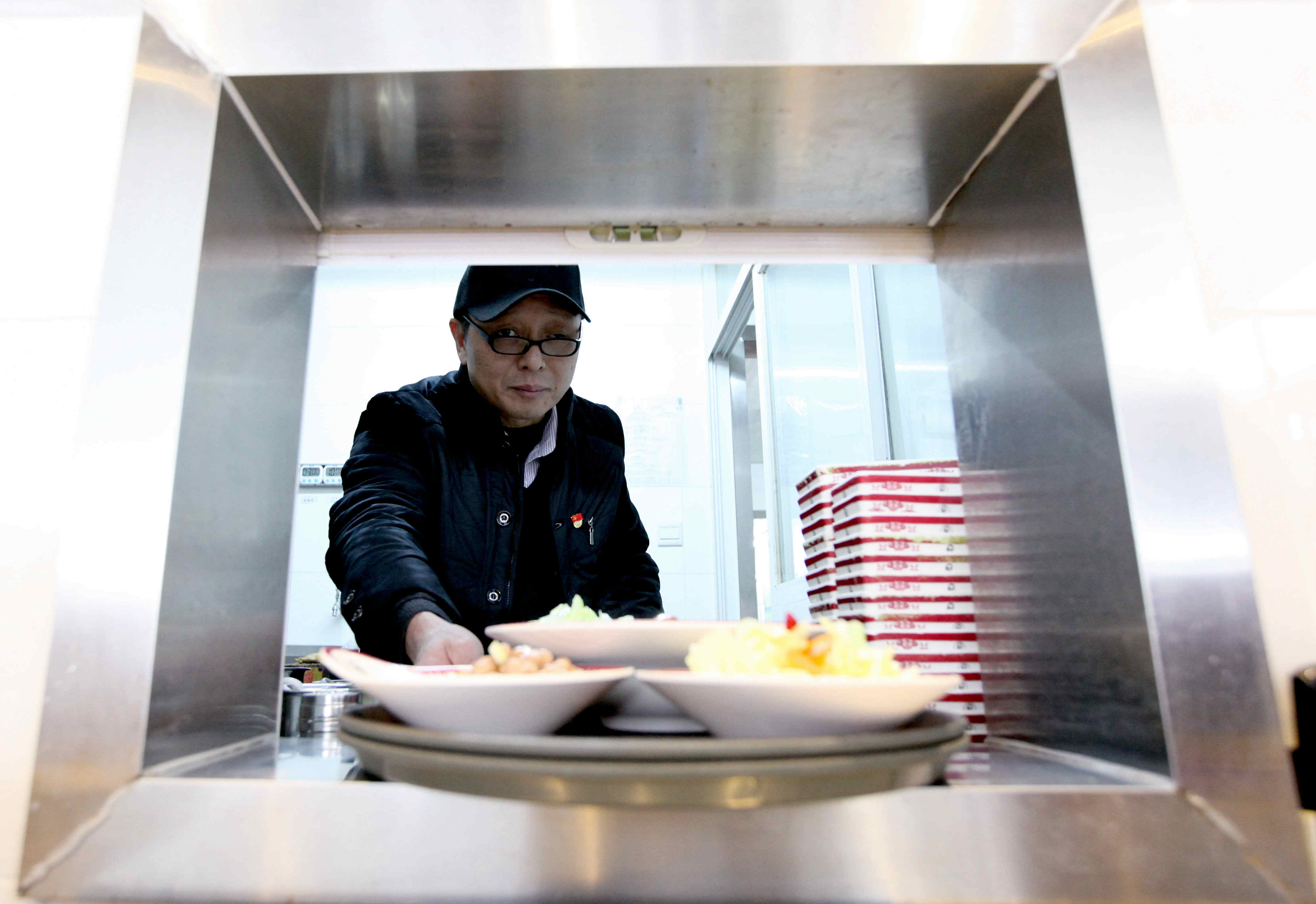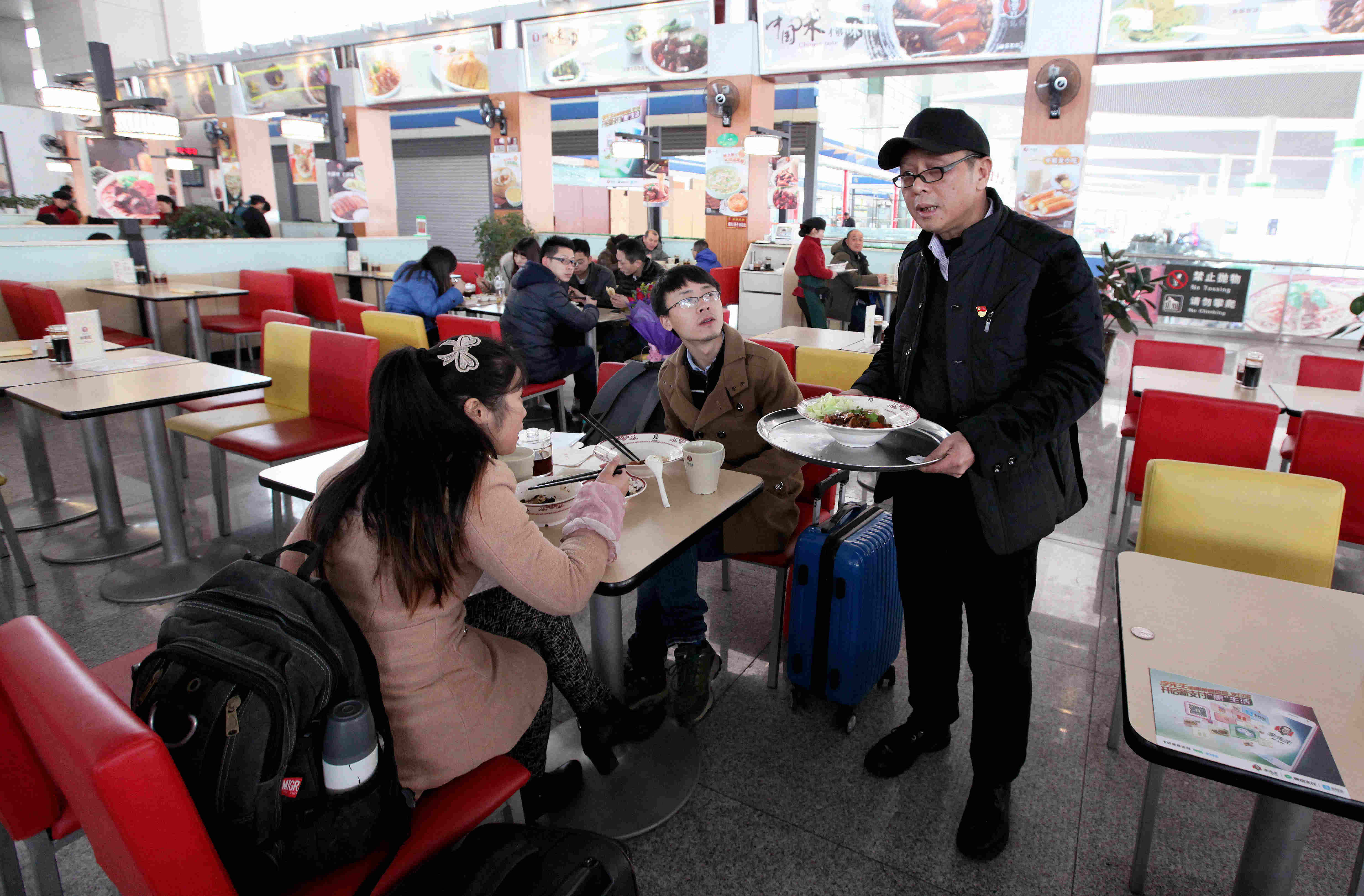 為了了解顧客的需求,劉和齊親自為顧客端菜服務(wù)。