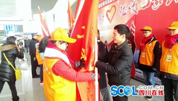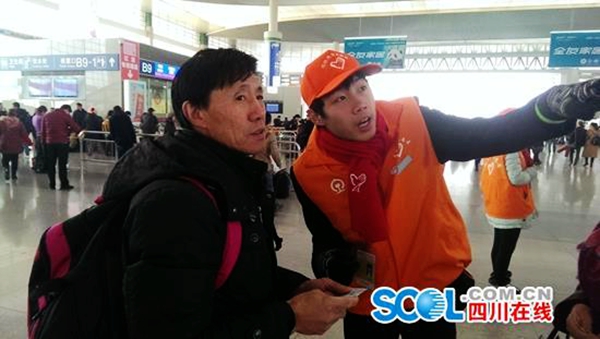 “多問一聲,知悉旅客冷暖;多說一句,叮囑旅客平安;多笑一次,傳遞暖冬溫情;多幫一把,為愛心手相連?!?月24日,春運(yùn)第一天,在成都東站候車大廳百名志愿者的承諾聲中,全省青年志愿者服務(wù)春運(yùn)“暖冬行動(dòng)”正式啟動(dòng)。今年春運(yùn)期間,近百萬青年志愿者投身到春運(yùn)志愿服務(wù)中。
