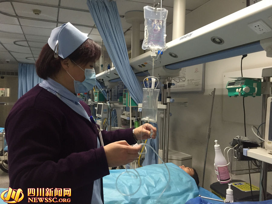 臨近春節(jié)的一個下午,在四川省醫(yī)院急診科,44歲的姚靜穿梭在走廊里忙碌。去年11月,她當(dāng)上了四川省醫(yī)院急診科的代理護(hù)士長,不僅要做臨床,還要負(fù)責(zé)行政管理。她說,在她當(dāng)護(hù)士的24年里,只有兩三年是和家人一起吃的年夜飯,其余時間,都是在值班。今年春節(jié),她又要值班,堅守在崗位?!半m然有很多不能陪伴家人的無奈,但我們面對的是病人的生死大事,每一次把病人從生死線上拉回來都感動如初?!?
