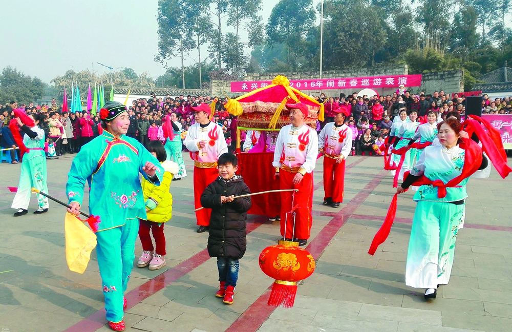 花車、鑼鼓、秧歌,一路歡歌、一路喜慶。作為永興街道“2016年春節(jié)巡游”活動的重要一環(huán),天府新區(qū)永興街道干塘村的“幺妹燈”非遺文化表演,為2000余名游客帶來了一場視覺盛宴。春節(jié)期間,每天一個主題的巡游表演讓游客看得過癮、耍得巴適。