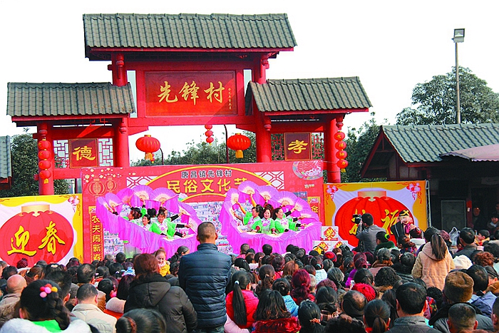 扭秧歌、打腰鼓、耍龍燈……正月初一,郫縣唐昌鎮(zhèn)先鋒村首屆民俗文化節(jié)在先鋒村廣場舉行,鄉(xiāng)情鄉(xiāng)音的文藝表演、扎糖人等傳統(tǒng)活動吸引上萬人參與。
