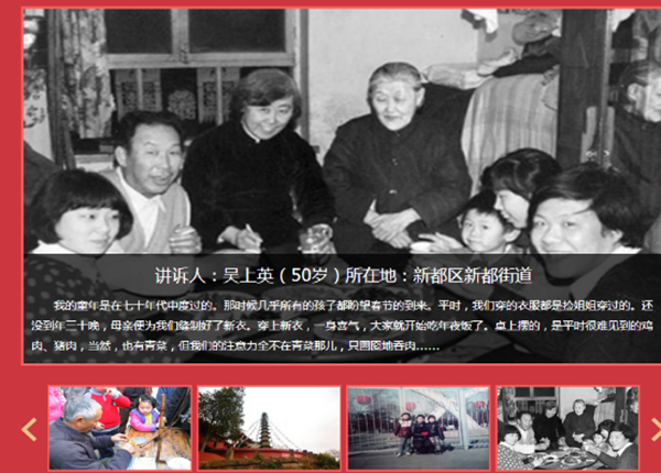 活動(dòng)自1月初正式啟動(dòng)以來,得到了不少網(wǎng)友的關(guān)注。大家紛紛邀請(qǐng)家里老人講述那些年的“年”,并提供了30余幅相關(guān)圖片,其中包括為人熟知的燒香、貼窗花等傳統(tǒng)習(xí)俗,融合了傳統(tǒng)文化的燈會(huì)、舞獅以及老一輩們過年時(shí)的童年趣事等。歲月更迭,濃濃的年味卻從未消失過。