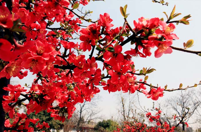 沐浴著春天的陽光,紅艷艷的海棠花在郫縣農(nóng)科村里開得春意盎然,農(nóng)科村的海棠花花期將持續(xù)一個(gè)月。