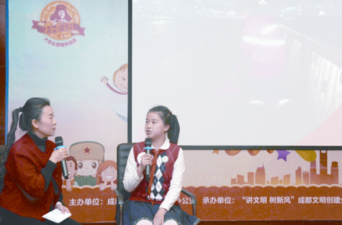 隨后,第三封信的主人、五年級(jí)的茆詩淇分享了她在金沙遺址當(dāng)義務(wù)講解員的故事,她最后對(duì)話“雷鋒”,“雷鋒叔叔,您是不是也覺得,付出的時(shí)候,自己也長知識(shí)、不斷在收獲?”