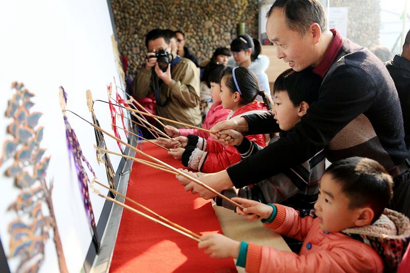 明月村的孩子們跟著老師學(xué)習(xí)皮影戲