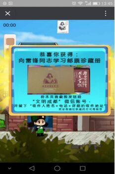 成都文明網(wǎng)開發(fā)的這款微信互動小游戲以雷鋒同志生活的年代背景為主風(fēng)格,以《雷鋒日記》為發(fā)展主線,邀請網(wǎng)友們以解迷的形式化身“雷鋒”,幫助游戲中的各類人群,每成功完成一次任務(wù),將獲得“雷鋒紀(jì)念郵票”圖標(biāo)一張,順利通關(guān)后將有機(jī)會獲得實(shí)體郵票一套,或雷鋒公仔車載玩偶、雷鋒卡通形象抱枕等禮物,讓眾網(wǎng)友在玩樂的同時(shí),體會雷鋒同志無私的愛心以及樂于助人的快樂。網(wǎng)友“成都雞蛋哥”表示,自己為了沖擊雷鋒郵票套裝,已經(jīng)連刷了20次游戲,“游戲比我想象中更有難度,拼的是手速和記憶力?!庇螒蛴?月5日 推出以后,兩天時(shí)間里吸引了近15萬網(wǎng)友參與,其中超8萬名網(wǎng)友通關(guān)成功。點(diǎn)擊進(jìn)入游戲