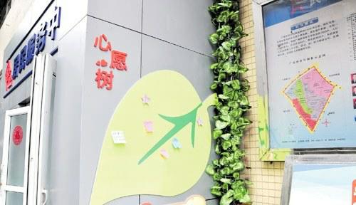 在雙楠街道廣福橋社區(qū)門外的墻面上,貼起了一張大樹外形的海報(bào),這是社區(qū)為居民“種”下的心愿樹,上面用便簽貼滿了居民需要的社區(qū)服務(wù),從理發(fā)到法律咨詢,五花八門的內(nèi)容涵蓋了生活的方方面面。