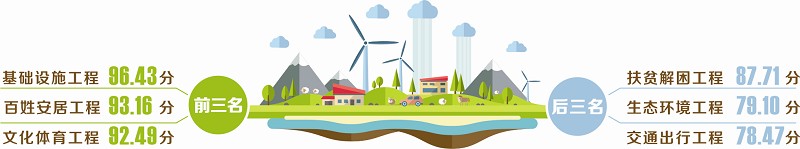 此外,“百姓安居工程”和“文化體育工程”分別位列第二和第三,包括“老舊院落改造”和“公益電影放映活動(dòng)”等項(xiàng)目均得到群眾廣泛點(diǎn)贊。