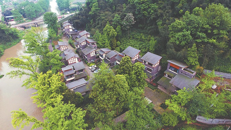 4月12日,從邛崍市夾關鎮(zhèn)周河扁新村上空300米處航拍,新村猶如一幅畫卷。