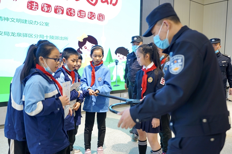 4月7日上午,“安全伴我行·文明有禮”法制宣傳進(jìn)校園公益活動,在成都大學(xué)附屬小學(xué)舉行,來自成都市少城小學(xué)的小小志愿講解員鄭涵菲,與成都市公安局龍泉驛區(qū)分局十陵派出所的民警王洋,為全校的同學(xué)們帶來了校園安全知識以及法制講解。