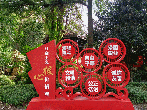 成都杜甫草堂博物館內(nèi)的社會主義核心價值觀景觀