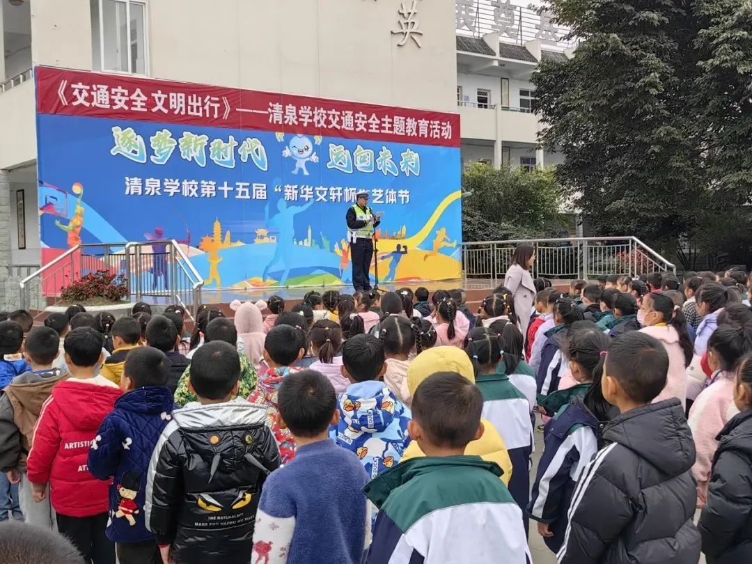 在青白江區(qū)清泉小學(xué),成都交警九分局民警引導(dǎo)學(xué)生從點滴做起,自覺養(yǎng)成遵守道路交通法規(guī)、文明出行的好習(xí)慣。