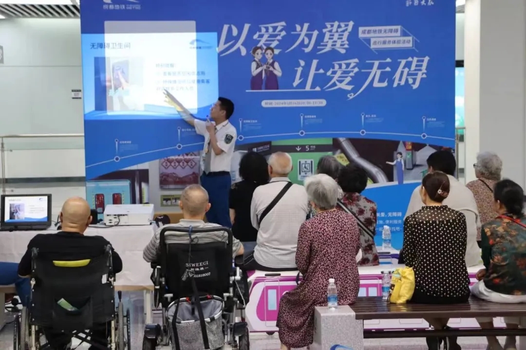 在成都地鐵孵化園站“以愛為翼,讓愛無礙”主題助殘活動中,邀請部分特殊人群親身體驗(yàn)地鐵的無障礙出行和車站的無障礙設(shè)備設(shè)施?!跋M恳粋€(gè)地鐵站里都設(shè)立無障礙衛(wèi)生間”“在樓梯扶手起點(diǎn)、終點(diǎn)處能不能設(shè)置金屬墊組成盲文引導(dǎo),分別表示‘臺階向上’和‘臺階向下’”……成都地鐵工作人員將大家的寶貴意見紛紛記錄下來,后期將根據(jù)意見建議進(jìn)一步完善地鐵出行服務(wù),讓乘車環(huán)境更加和諧有愛。