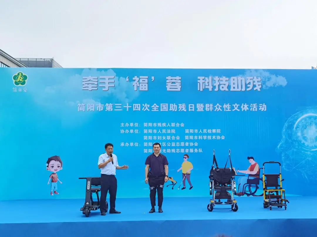 “智能助行機(jī)器人可提升康復(fù)訓(xùn)練效果,有效改善......”在簡陽市中心廣場科技助殘企業(yè)相關(guān)負(fù)責(zé)人正在演示智能助行機(jī)器人、電動爬樓機(jī)、老年助行車、智能仿生手等高科技助殘產(chǎn)品,讓殘疾人感受到科技帶來的便利,幫助殘疾人朋友“走”得更遠(yuǎn)、更穩(wěn)。