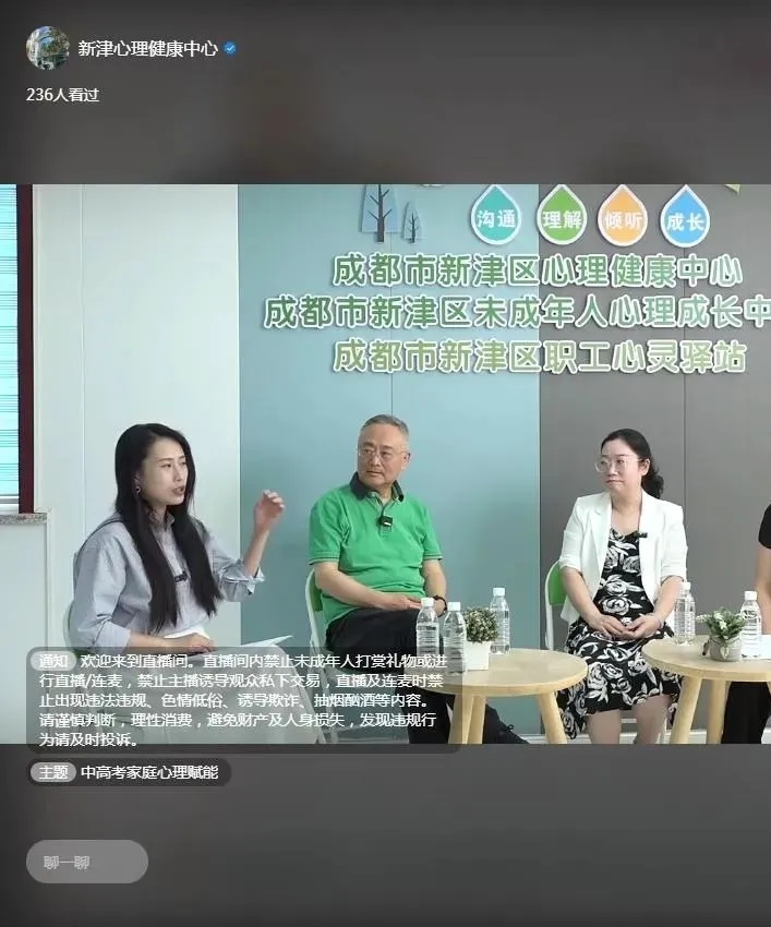 5月23日,主題為“中高考家庭心理賦能”的未成年人心理健康宣傳月線上直播活動(dòng)準(zhǔn)時(shí)開(kāi)播。直播過(guò)程中,觀眾們積極與心理老師提問(wèn)互動(dòng),專家們圍繞“中高考對(duì)孩子和家庭的意義?”“面對(duì)考試,家庭成員們都承擔(dān)了怎樣的角色?”以及“家長(zhǎng)做或不做什么,能在考前給予孩子最大支持?”這三個(gè)方面的問(wèn)題進(jìn)行了深入淺出的科普,并及時(shí)回應(yīng)觀眾的問(wèn)題。