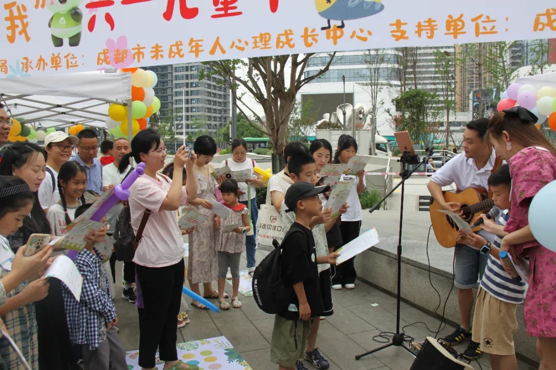 在音樂(lè)表演區(qū),“音浪街頭,樂(lè)在成長(zhǎng)”活動(dòng)吸引了大量觀眾駐足。小型樂(lè)隊(duì)和來(lái)自四川音樂(lè)學(xué)院的老師以成都市未成年人心理健康主題歌曲《樂(lè)在成長(zhǎng)》為主打,帶來(lái)了精彩的表演。孩子們紛紛加入其中,與老師一起揮舞手中的小樂(lè)器,合著音樂(lè)的節(jié)奏舞動(dòng)身體,現(xiàn)場(chǎng)氣氛熱烈而歡快。