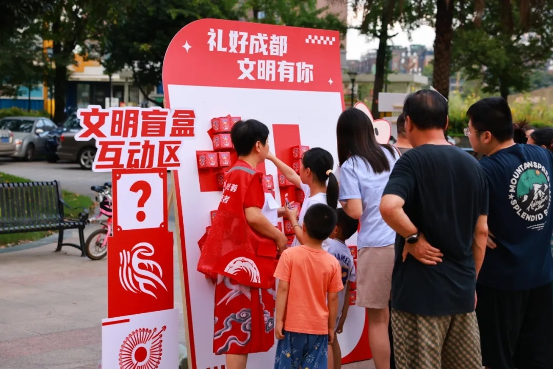 溫江區(qū)在居民社區(qū)設(shè)置了文明盲盒互動區(qū),吸引群眾參與“禮好成都 文明有你”有獎答題活動 溫江區(qū)文明辦供圖