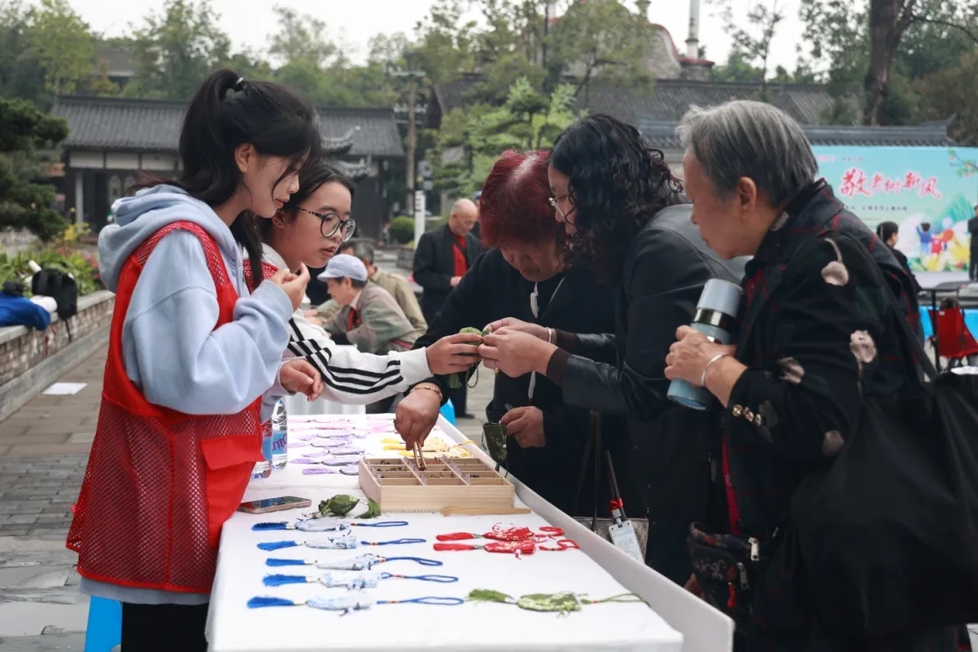 青白江區(qū),老年人制作茱萸香囊體驗重陽節(jié)民俗。