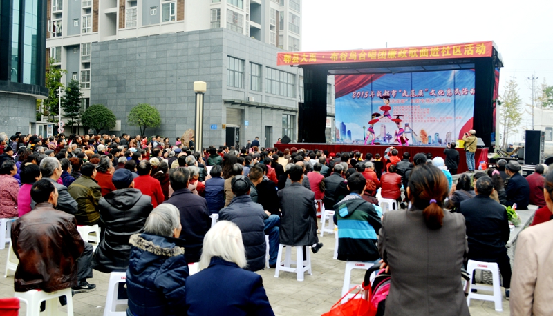 11月19日,由成都市委宣傳部主辦的2015年成都市“走基層”文化惠民活動(dòng)在郫縣德源鎮(zhèn)馨美佳苑社區(qū)廣場(chǎng)舉行,德源鎮(zhèn)文化志愿者及群眾共計(jì)650余人觀看并參與到活動(dòng)中。此次演出以“廉潔成都”為主題,將“廉潔”元素融入節(jié)目,彰顯廉政文化正能量,唱響風(fēng)清氣正主旋律。