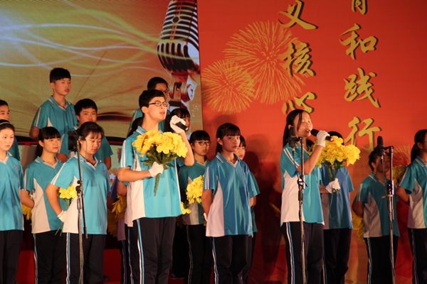活動在團體合唱《世紀的約定——社會主義核心價值觀“二十四字歌”》中拉開了序幕。歡快的旋律、靈動的節(jié)奏充分展示了郫縣少年兒童崇德向善、熱愛生活、奮發(fā)進取的精神風貌。活動中,縣委書記蘇鵬,縣委常委、宣傳部長陳曉平,縣人大副主任李德俊,縣政府副縣長吳紅艷,縣政協(xié)副主席王生琪等縣領(lǐng)導上臺為6名2015年成都市的“美德少年”頒發(fā)證書和紀念品。
