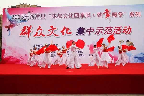 為豐富群眾文化生活,打造基層群眾文化活動品牌,近日,新津縣在西河故道濃重舉行了“成都文化四季風?勁舞暖冬”系列群眾文化集中示范活動。