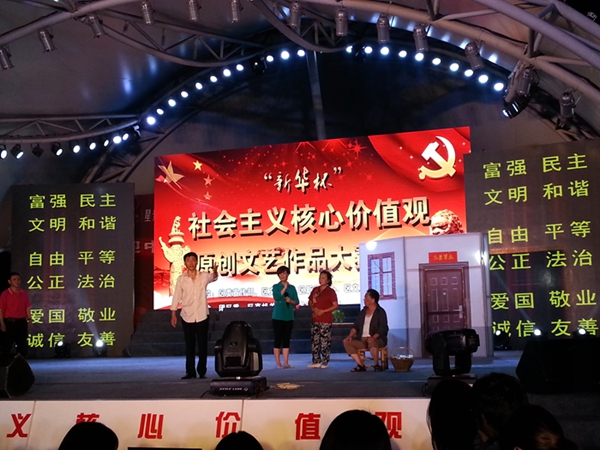 溫江光祈藝術(shù)團(tuán)把自己對社會主義核心價(jià)值觀的理解、把散落在民間的愛心和社會責(zé)任,以藝術(shù)的形式再現(xiàn)于舞臺,自編自演取材于溫江苦竹村趙正康書記的真人真事的小品《苦竹村的路》,不僅激發(fā)了群眾的興趣,也讓群眾受到社會主義核心價(jià)值觀的感染和熏陶。