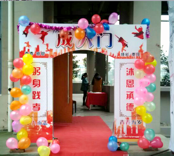 活動開始前,在活動地門口擺放好成人門,嘉賓通過成人門即寓意著:邁入青春門,將重返18歲;邁入成人門,將從稚嫩走向成熟。十八歲的青春力量用熱情開啟了生命的盛大典禮,在學(xué)院領(lǐng)導(dǎo)為新生送上成人祝福后,活動正式開始。