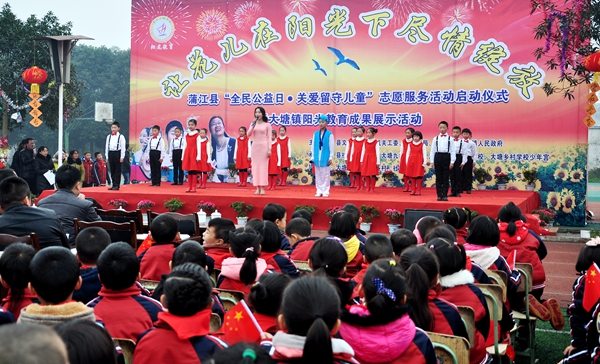 為大力弘揚“奉獻(xiàn)、友愛、互助、進(jìn)步”的志愿精神,發(fā)揮蒲江縣黨員志愿者先鋒模范作用,營造關(guān)愛留守兒童的良好環(huán)境,12月28日,蒲江縣文明辦、蒲江縣直機關(guān)工委、蒲江縣教育局、蒲江團縣委、大塘鎮(zhèn)人民政府聯(lián)合在大塘鎮(zhèn)九年制學(xué)校以“讓花兒在陽光下盡情綻放”為主題,成功舉辦了“蒲江縣‘全民公益日·關(guān)愛留守兒童’志愿服務(wù)活動啟動儀式暨大塘鎮(zhèn)陽光教育成果展示活動”。共計兩千余人參加本次活動。