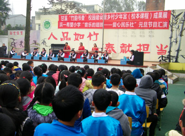為充分展示學(xué)校少年宮各興趣小組的培訓(xùn)成果,推動(dòng)2016年工作的進(jìn)一步深入,12月31日,蒲江縣甘溪鎮(zhèn)鄉(xiāng)村學(xué)校少年宮結(jié)合元旦慶?;顒?dòng),隆重舉行主題為“竹韻書香”的成果展示活動(dòng)。