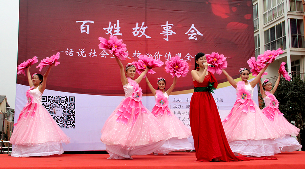 為傳播和弘揚社會正能量,宣傳和踐行社會主義核心價值觀,由中共成都市委宣傳部主辦,成都市廣播電視臺協(xié)辦的《百姓故事會——話說社會主義核心價值觀》全市巡演,于2016年1月7日走進蒲江長秋新村。