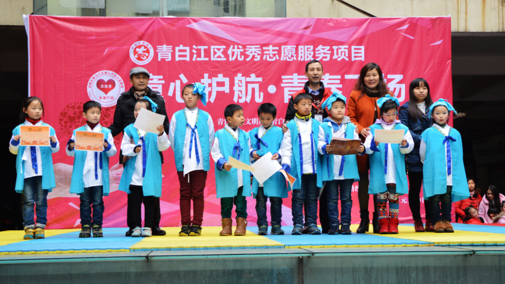 1月10日下午3點(diǎn),由青白江區(qū)文明辦、區(qū)教育局、團(tuán)區(qū)委、區(qū)婦聯(lián)主辦、北清苑教育培訓(xùn)學(xué)校、青白江區(qū)義工聯(lián)承辦的區(qū)優(yōu)秀志愿服務(wù)項(xiàng)目“童心護(hù)航”—公益課堂第2期在青白江區(qū)大邦財(cái)富廣場舉行結(jié)業(yè)典禮?,F(xiàn)場“童心護(hù)航”—公益課堂第1、2期的160名學(xué)生及240余名轄區(qū)內(nèi)少年兒童、家長參加了典禮。
