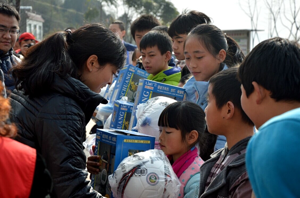 青白江區(qū)人和鄉(xiāng)南岳村地處龍泉山脈中段,位于人和鄉(xiāng)人民政府東北部,海拔916米;距人和鄉(xiāng)人民政府14公里,距青白江城區(qū)45公里,人和鄉(xiāng)境內(nèi)山路崎嶇,坡道很多,交通十分不便。這里的留守孩子一般都會走上幾里甚至十幾里才能乘上往返學(xué)校的公交車,地域條件的限制讓很多資源達不到對接。1月16日下午,在成都市文明辦指導(dǎo)下,“講文明 樹新風(fēng)”成都文明創(chuàng)建全媒體平臺、成都晚報社、成都市慈善總會、青白江區(qū)文明辦聯(lián)合發(fā)起“種愛行動——種下一份愛·加油足球夢”第二季暨“暖冬行,愛傳遞”——童心護航 走入南岳”活動,在人和鄉(xiāng)南岳村順利開展。