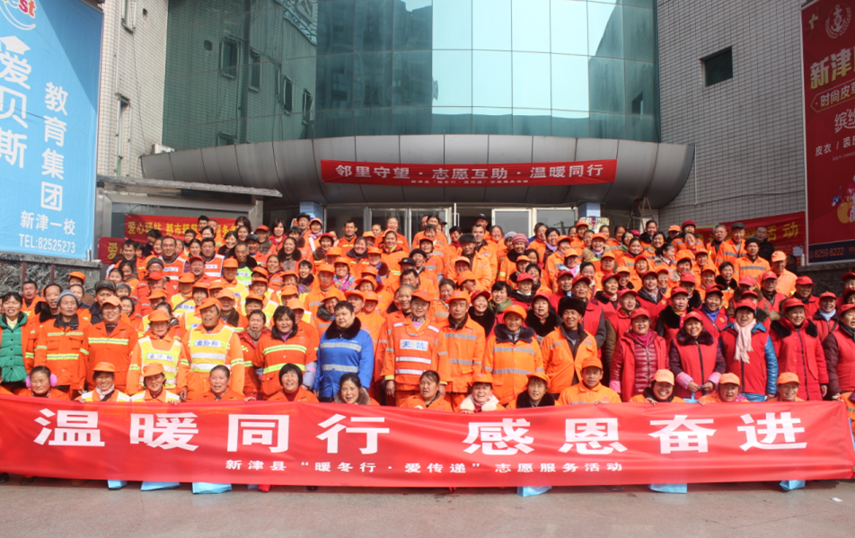 為進一步弘揚“奉獻、友愛、互助、進步”的志愿精神,為辛苦勞作一年的環(huán)衛(wèi)工人、文明勸導(dǎo)員、建筑工人送上節(jié)日的慰問。在新春佳節(jié)來臨之際,由新津縣文明辦主辦、新津縣太平洋電影城、縣文聯(lián)書畫協(xié)會、“文明新津·愛心驛站”聯(lián)盟商家協(xié)辦的“暖冬行·愛傳遞”大型公益活動于1月15日在太平洋電影城舉行,全縣近1000名環(huán)衛(wèi)工人、文明勸導(dǎo)員、建筑工人參加了此次活動。