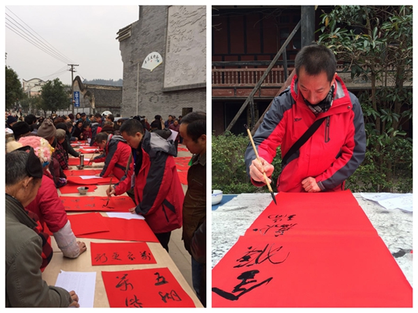 為弘揚(yáng)中華民族優(yōu)秀傳統(tǒng)文化,豐富城鄉(xiāng)群眾精神文化生活,大力培育和踐行社會(huì)主義核心價(jià)值觀,結(jié)合“暖冬行·愛傳遞”主題志愿服務(wù)和“我們的節(jié)日”活動(dòng),1月18日,由金堂縣文旅局主辦,縣文化館、土橋鎮(zhèn)人民政府承辦的“文化四季風(fēng)·民俗鬧春”系列活動(dòng)2016年金堂文化志愿者新春送春聯(lián)活動(dòng)在土橋鎮(zhèn)舉行,此次活動(dòng)也拉開了金堂縣2016年“文化四季風(fēng)”系列活動(dòng)的帷幕。