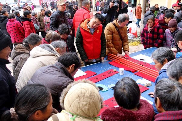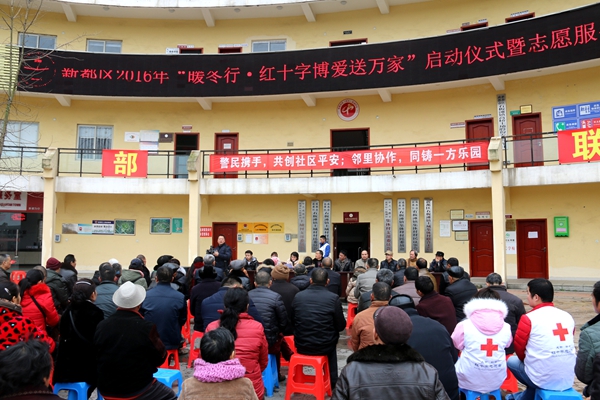 2016年1月20日,由新都區(qū)文明辦、紅十字會(huì)、衛(wèi)計(jì)局、文聯(lián)聯(lián)合組織開(kāi)展的2016年“暖冬行·紅十字博愛(ài)送萬(wàn)家”啟動(dòng)儀式暨志愿服務(wù)活動(dòng)成功舉行。送健康,新春義診。來(lái)自中醫(yī)院志愿者為社區(qū)居民開(kāi)展健康體檢和健康咨詢(xún)。心悅善行社工機(jī)構(gòu)的心理咨詢(xún)師現(xiàn)場(chǎng)為社區(qū)居民開(kāi)展心理健康咨詢(xún)。送祝福,寫(xiě)春聯(lián)。來(lái)自新都畫(huà)院的藝術(shù)家志愿者現(xiàn)場(chǎng)揮毫潑墨,免費(fèi)為村民書(shū)寫(xiě)春聯(lián),要啥春聯(lián),群眾自己下訂單。送清爽,免費(fèi)理發(fā)。來(lái)自社會(huì)的志愿者免費(fèi)為村民理發(fā),使大家清清爽爽迎新年。送和諧,公益攝影。來(lái)自區(qū)攝影家協(xié)會(huì)的志愿者將用鏡頭記錄下志愿者服務(wù)的精彩瞬間,同時(shí)為群眾免費(fèi)攝影,留下美好的回憶。送知識(shí),有獎(jiǎng)競(jìng)答。紅十字師資為社區(qū)居民現(xiàn)場(chǎng)講授應(yīng)急救護(hù)知識(shí),并邀請(qǐng)現(xiàn)場(chǎng)觀眾開(kāi)展有獎(jiǎng)知識(shí)競(jìng)答。