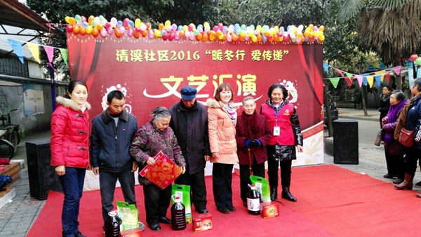 社區(qū)文體協(xié)會(huì)成員聯(lián)與成都銀行戰(zhàn)旗支行合作帶來《歡樂中國(guó)年》,為文藝匯演拉開了序幕。綠洲幼兒園金沙分園的小朋友們憨態(tài)可掬的舞蹈,讓居民們樂不可支。在文藝表演的間隙,青羊區(qū)國(guó)稅局慰問了轄區(qū)低保戶、殘疾人、高齡老人、優(yōu)撫對(duì)象代表;成都銀行戰(zhàn)旗支行對(duì)轄區(qū)困難家庭、高齡黨員、 計(jì)生困難家庭、特扶家庭等困難代表進(jìn)行現(xiàn)場(chǎng)慰問,對(duì)于行動(dòng)不便的困難戶,社區(qū)志愿者將慰問禮品送到居民家中。