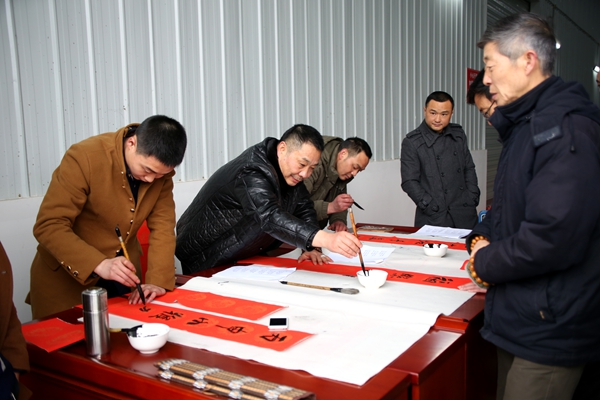同時(shí),縣上的書畫、攝影志愿者們也來到現(xiàn)場(chǎng),為工人朋友們開展送春聯(lián)、送“?!弊?、送照片等活動(dòng),受到大家的熱捧,書法家們揮毫潑墨,樂此不彼,忙得不可開交。一位在場(chǎng)在企業(yè)員工說道:“我們平時(shí)上班比較枯燥,這樣精彩的文化活動(dòng)走進(jìn)企業(yè),讓我們提前感受到了新春的氣息,同時(shí)也感覺非常暖心。”
