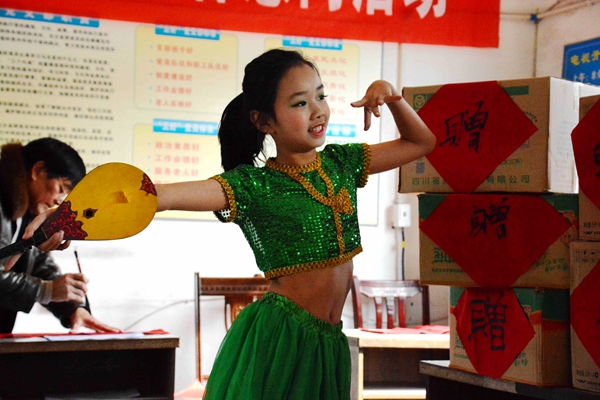 慰問活動(dòng)中,青少年宮的學(xué)員為敬老院的老人們表演了精心準(zhǔn)備的節(jié)目。節(jié)奏歡快的快板表演《臨邛娃娃贊家鄉(xiāng)》;古典優(yōu)美的舞蹈《心愛的冬不拉》;甜美悅耳的童聲獨(dú)唱《歌唱二小放牛郎》;清脆動(dòng)聽的豎笛演奏《天空之城》以及大合唱《新年好》,都向老人們表達(dá)了節(jié)日的祝福。隨后,大家一起為敬老院貼上了紅紅的對聯(lián)。演出活動(dòng)開始前青少年宮和竹溪物業(yè)管理有限公司一起向敬老院捐贈了米、面等生活用品。