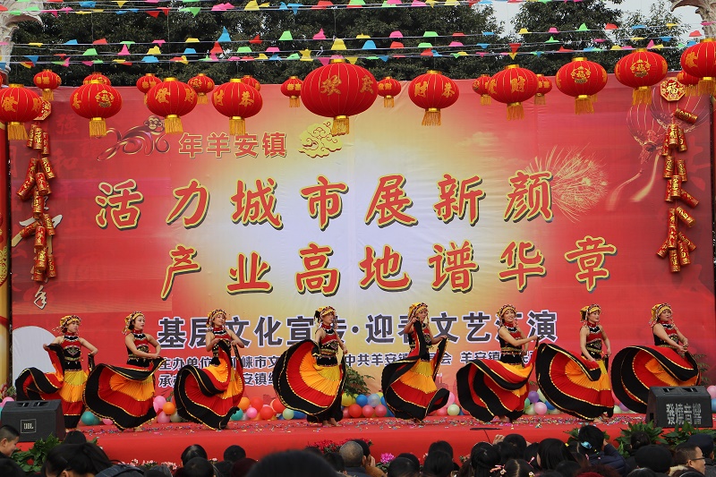 載歌載舞,喜迎新春。2016年1月26日,邛崍市羊安鎮(zhèn)中心廣場,張燈結(jié)彩,喜氣洋溢,人頭攢動,歡聲笑語,一派熱鬧喜慶的景象,一場主題為“活力城市展新顏、產(chǎn)業(yè)高地譜華章”的羊安鎮(zhèn)2016年迎新春大型文藝匯演活動在這里隆重舉行。來自全鎮(zhèn)各村(社區(qū))群眾以及新城區(qū)居民共上千人觀看了演出。