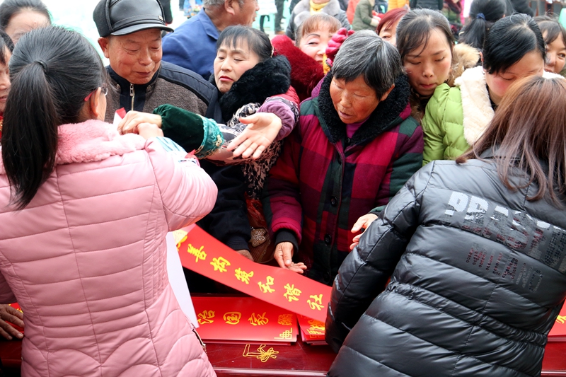 為廣大居民群眾送上書寫著以社會主義核心價值觀為主要內(nèi)容的新春對聯(lián)
