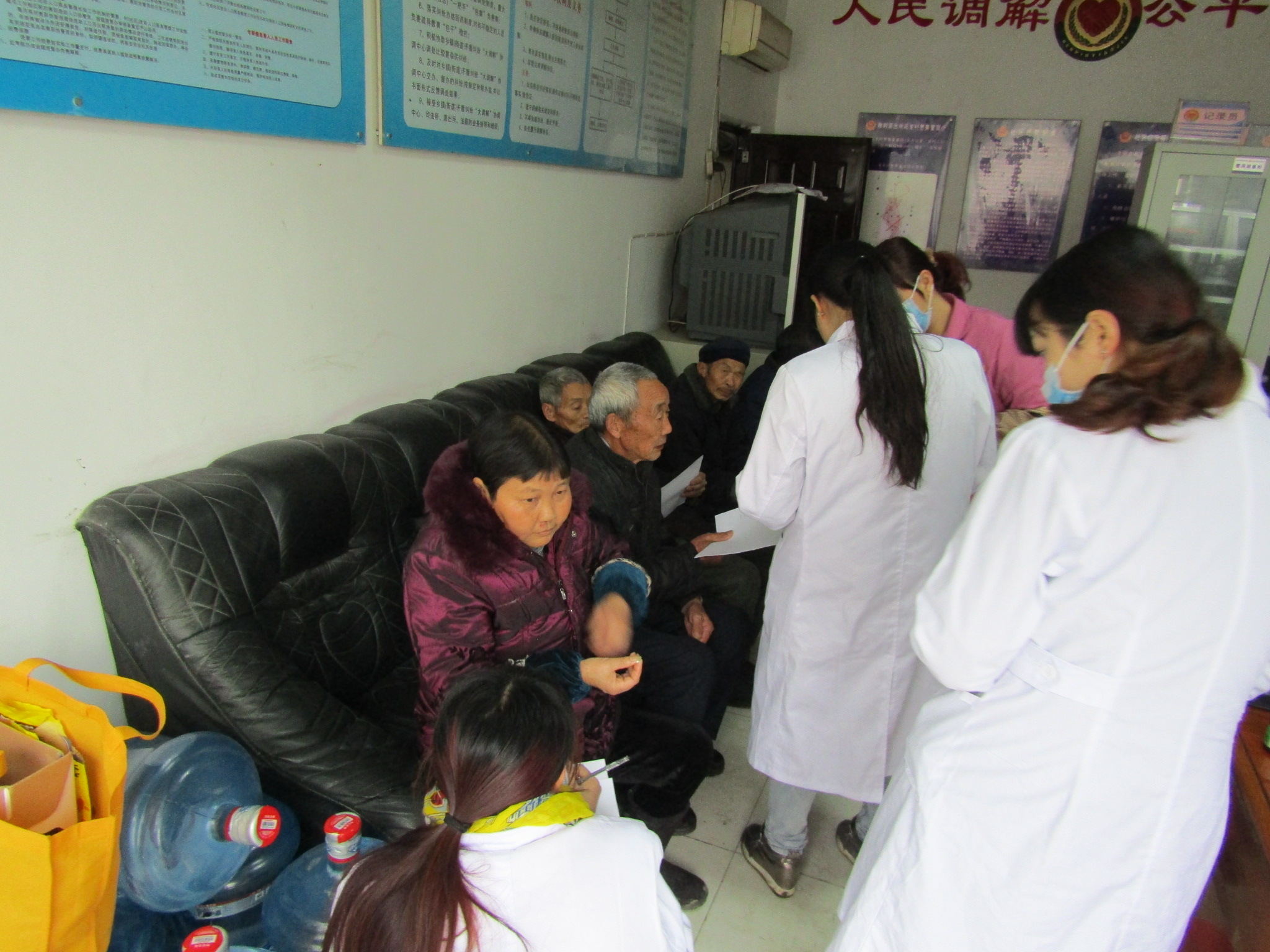 醫(yī)護志愿者們?yōu)殡p流花龍村空巢老人及貧困老人量血壓、測血糖、健康知識解答等
