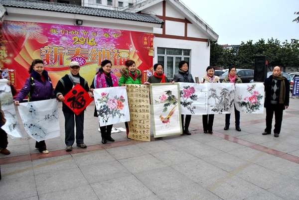 2月2日,由隆豐鎮(zhèn)黨委政府主辦的以“揮墨迎春送祝福,村民互動(dòng)創(chuàng)和諧”為主題的送文化送春聯(lián)活動(dòng)在文化站舉行。現(xiàn)場(chǎng)鑼鼓喧天,表演者們?yōu)槔习傩毡硌萘私?jīng)典川劇、空竹、快板說唱、對(duì)歌等精彩節(jié)目;同時(shí),由成都市美術(shù)家協(xié)會(huì)老年分會(huì)會(huì)長(zhǎng)楊坤芳帶領(lǐng)三十余位書法家現(xiàn)場(chǎng)為老百姓書寫春聯(lián),共送出春聯(lián)800余副。老師們還將現(xiàn)場(chǎng)作畫的作品贈(zèng)送予隆豐鎮(zhèn)人民政府。