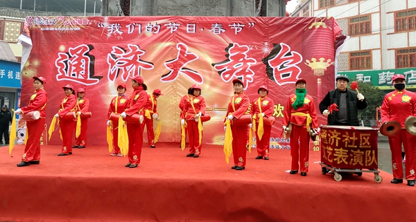 上午10點(diǎn),由通濟(jì)場(chǎng)社區(qū)組織的腰鼓隊(duì)和羊叉村組織的幺妹燈隊(duì)拉開了活動(dòng)的序幕。彭州市文聯(lián)書法家協(xié)會(huì)的志愿者書法家們還現(xiàn)場(chǎng)為老百姓書寫春聯(lián)。聯(lián)歡會(huì)節(jié)目精彩紛呈,為群眾送去了一份濃濃的溫暖和春節(jié)的氣氛。